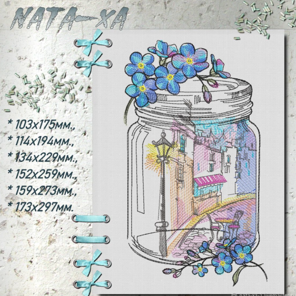 - 158.9x272.1 мм (6.26x10.71 "), 32052 стежков, 10 цветов