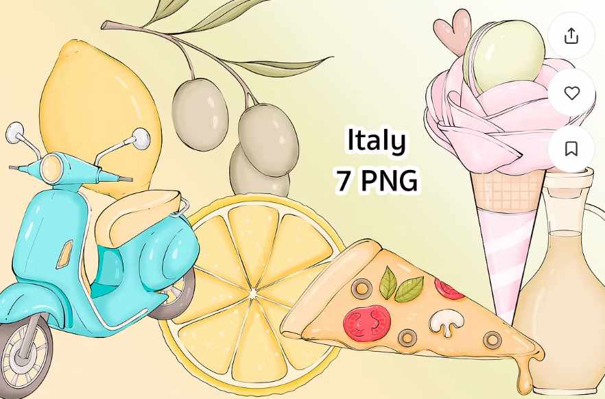 [Palmpink Illustrations] Набор иллюстраций Италия Клип-арт [Дарья Львова]