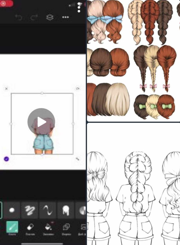 Девочка со спины с набором разных причесок, идеально подойдет для работы, где не хочется задействовать лицо.